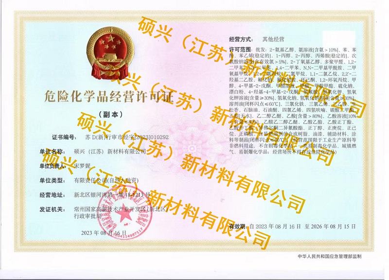 碩興新材料有限公司是一家集研發、生產、銷售于一體的化學品、有機溶劑、材料的供應企業